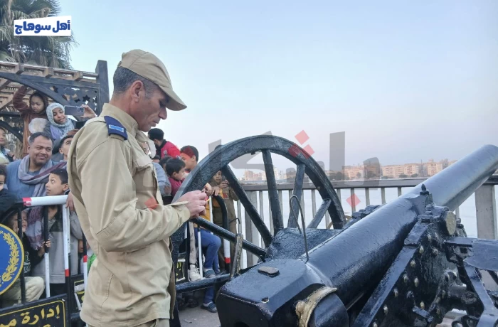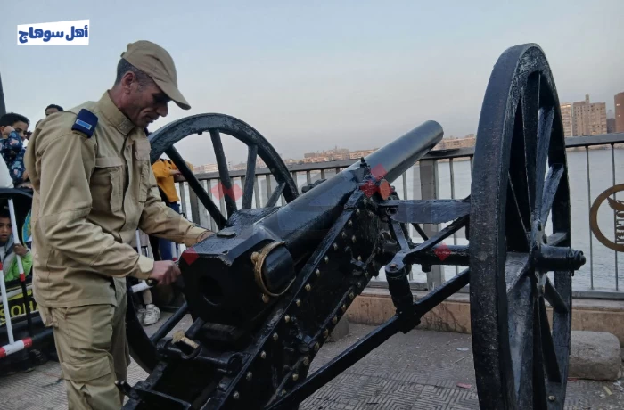 ينتقل المدفع -الذي يعود إلى العصر المملوكي في مصر- إلى موقعه الحالي على الكورنيش قبل يوم من بدء شهر رمضان مباشرةً، ويتولى أحد أفراد الأمن يوميًا طوال شهر رمضان إطلاق قذيفته. وارتكز المدفع سابقًا أمام مقر الحماية المدنية "المطافئ".