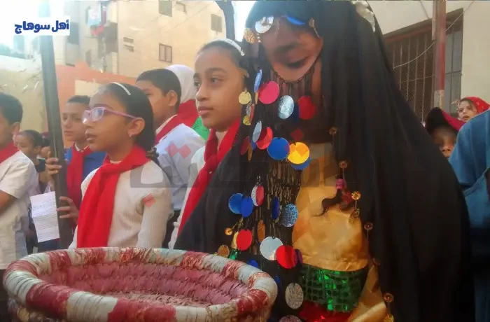 وبدأت فعاليات اليوم باحتفال إذاعي مميز خلال طابور الصباح، تضمن تلاوة آيات من القرآن الكريم وحديثًا نبويًا شريفًا، تلاه فقرة "هل تعلم؟" التي قدمت معلومات شيقة عن محافظة سوهاج، ثم كلمة تعريفية تناولت تاريخ المحافظة وإنجازاتها، إلى جانب فقرة "حكمة اليوم"، التي سلطت الضوء على شخصية المناضلة السوهاجية السيدة روحية بكير، إحدى رموز النضال النسائي في صعيد مصر.
