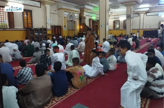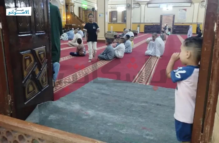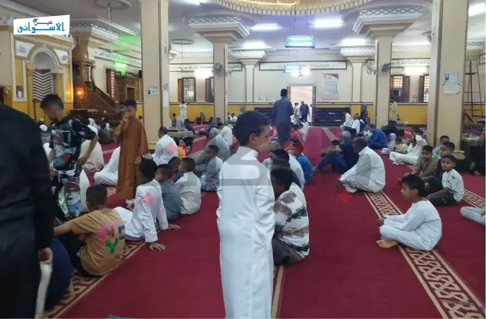 وبدأ الإمام والأطفال التكبير في تمام الساعة الخامسة صباحًا، عقب صلاة الفجر، لتملأ أصوات التهليل و الفرحة أرجاء المسجد.