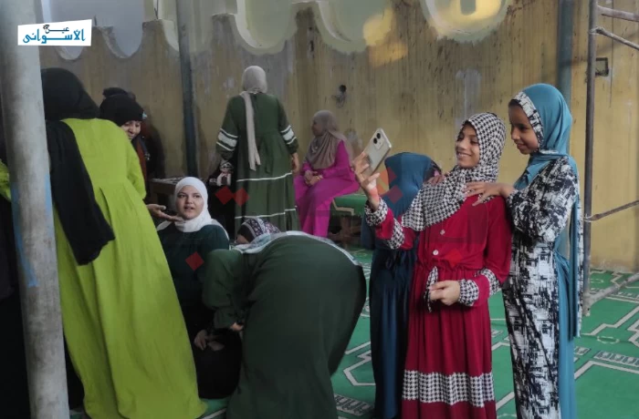 وفي مشهد أحاطت به الأشجار من الجانبين، أقام أهالي مستعمرة كيما صلاة العيد غرب السكة الحديدية بمركز أسوان بمحافظة أسوان، حيث فرشوا المفارش، و نصبوا الصوان، وجهزوا الكراسي لكبار السن، كما خصصوا مساحة مغطاة لمصلى السيدات، وجربوا الميكروفونات، و أكملوا بقية التجهيزات لإقامة الصلاة في أجواء منظمة.
