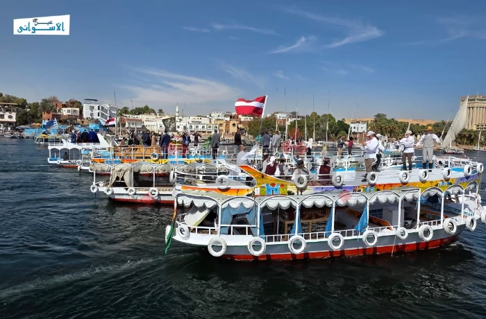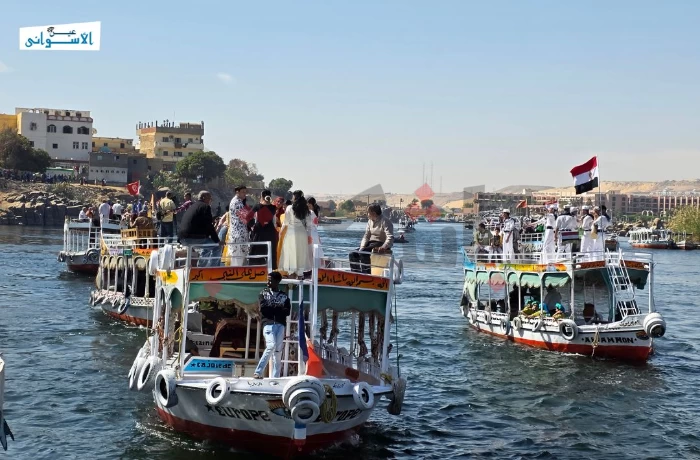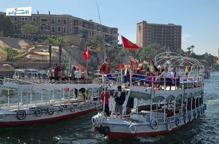 على وقع الطبول ووسط أشعة الشمس على مياه النيل، انطلق "الديفيليه النهري" بالمراكب، صباح اليوم الأربعاء، في مهرجان أسوان الدولي للثقافة والفنون بأجواء ملؤها البهجة والحيوية.