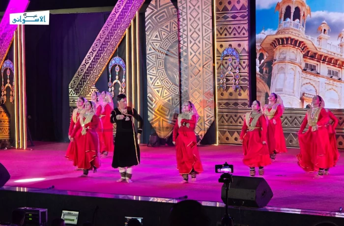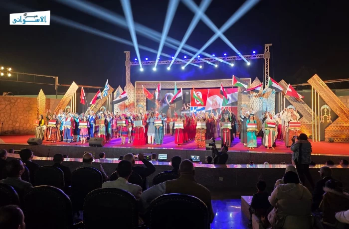 تحت أضواء مسرح فوزي فوزي، تحولت أسوان، ليلة أمس، إلى لوحة من الألوان والحركة، خلال مهرجان أسوان الدولي للثقافة والفنون، الذي تداخلت فيه أزياء الفرق الشعبية، وامتزجت اللغات دون الحاجة إلى ترجمة، لتصبح الخشبة مسرحًا مفتوحًا للحكايات الآتية من شتى القارات.