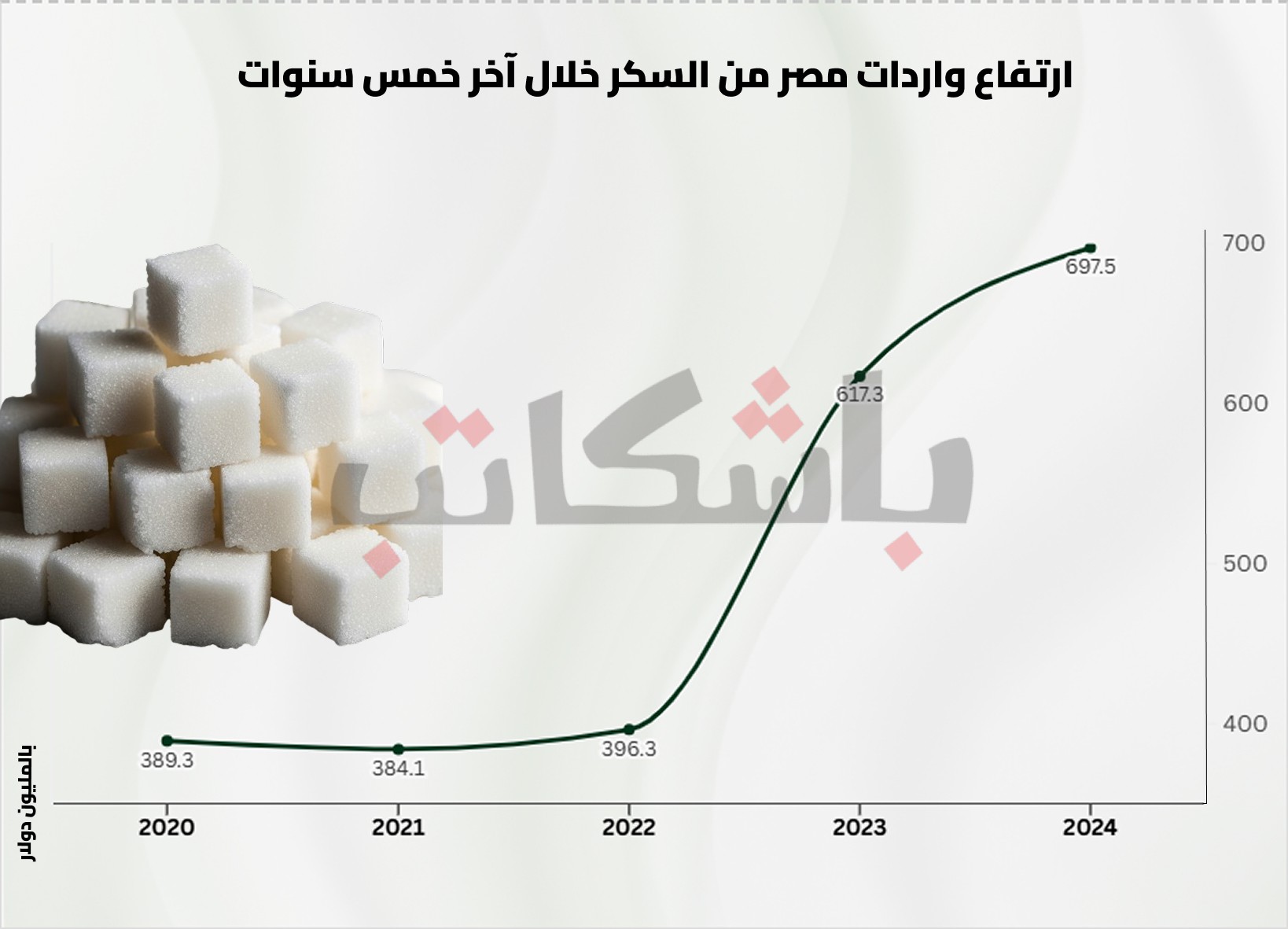 وارتفعت فاتورة واردات مصر من السكر بنسبة 22.5% العام الماضي إلى 890 مليون دولار مقابل 727 مليون دولار في 2023 وفق وزارة التموين.