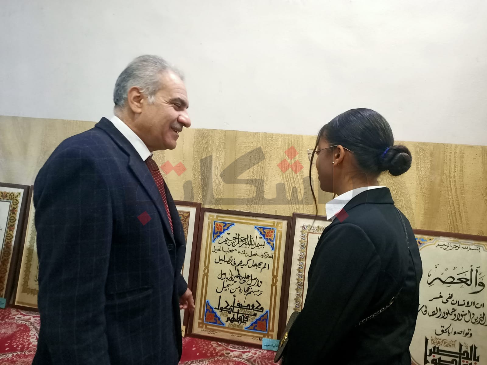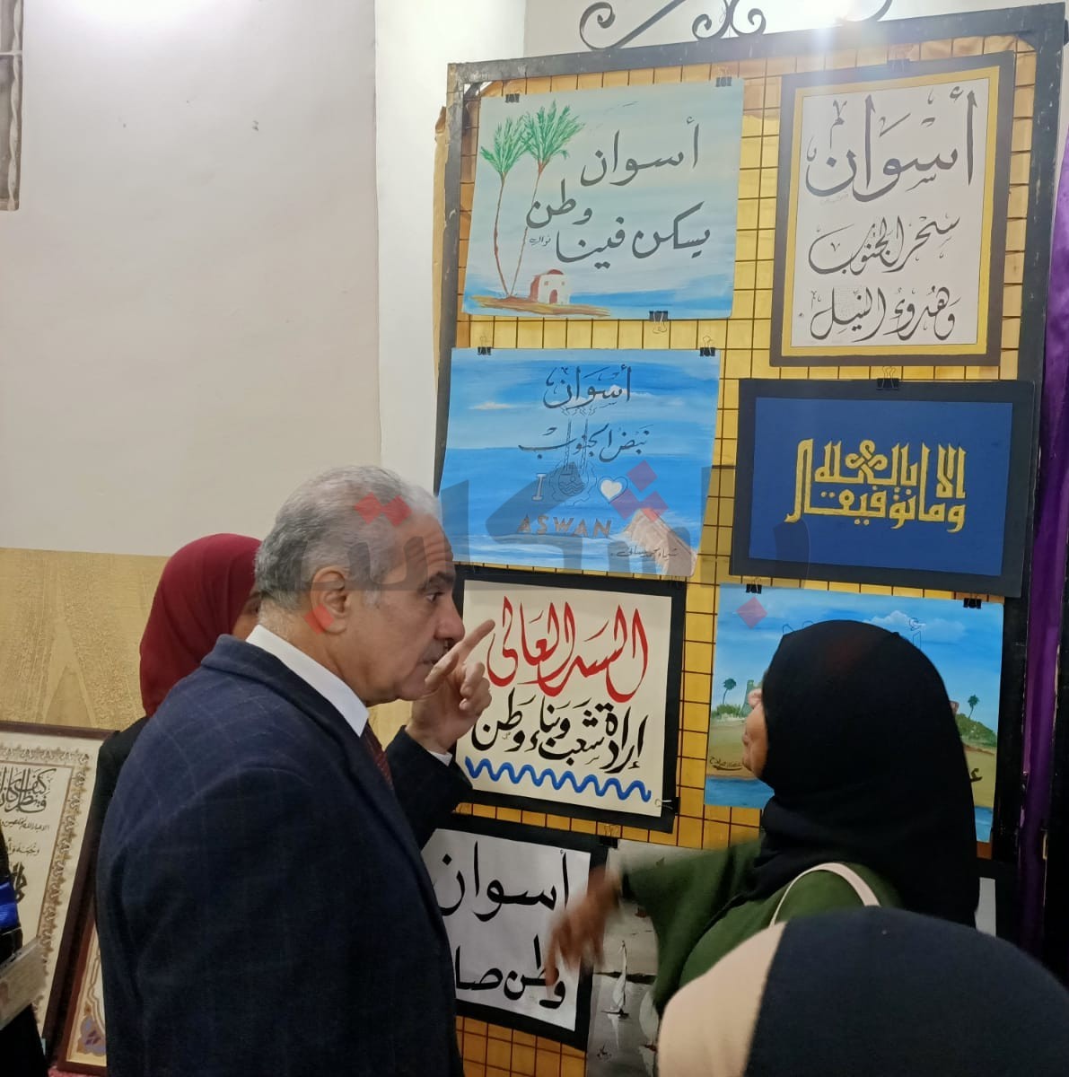 كما شارك بأعمالهم في المعارض الفنية التي ضمّها الاحتفال عددٌ من الطلاب، بينهم حياة زين، الطالبة بالفرقة الرابعة بكلية الحقوق جامعة أسوان، بلوحةٍ فنية بعنوان "أسوان درة الجنوب وحارسة التاريخ"، والطالبة علياء سعيد، بالصف الأول الثانوي، بمجموعة من اللوحات تضمنت أنواعًا مختلفة من الخطوط العربية التي تعلّمتها، كالرقعة والنسخ والديواني والكوفي والفارسي، مع استخدام الزخرفة في تزيين اللوحات.