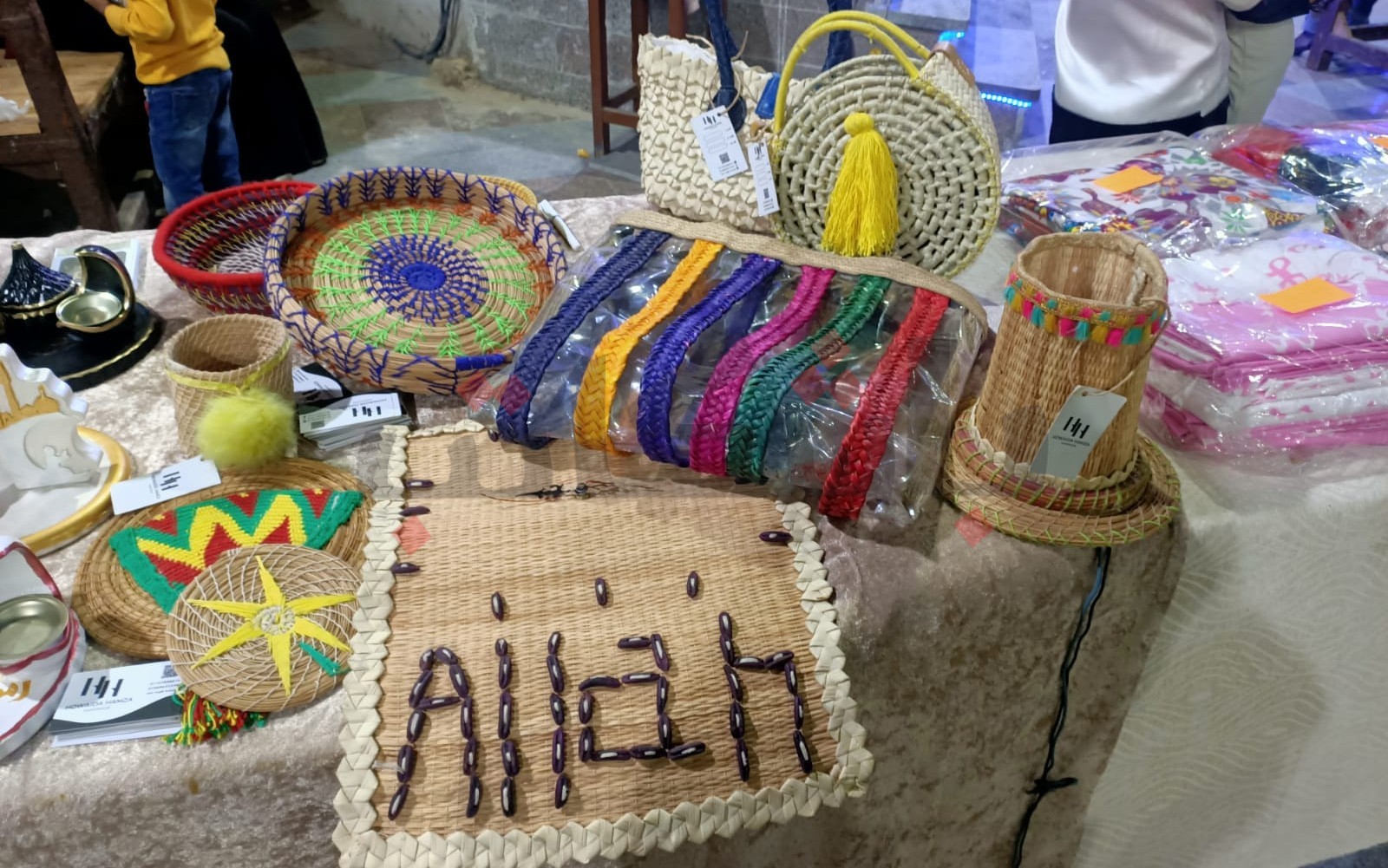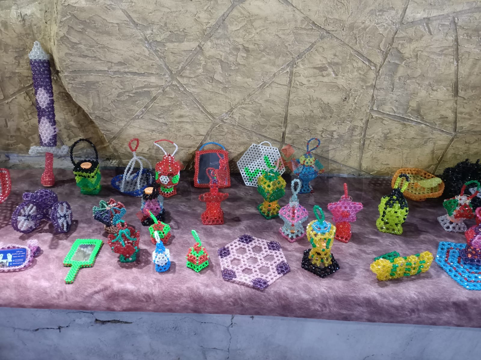 بينما شاركت بسملة عمر بعددٍ من المنتجات شملت الحقائب اليدوية والأباجورات وساعات الحائط، مؤكدةً أن والدتها كان لها دورٌ كبير في دعمها وتنمية موهبتها في مجال الأشغال اليدوية.