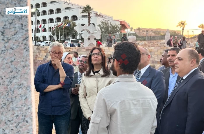 وعلى هامش المهرجان، تفقدت وزيرة الثقافة في أولى زيارة رسمية، معرض نتاج أعمال الدورة الثلاثين لسمبوزيوم أسوان الدولي للنحت، لتشهد أعمال الفنانين المنحوتة من الجرانيت الأسواني.