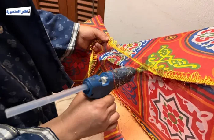 المشهد لا يبدو مجرد صناعة يدوية، بل طقسًا يوميًا تتبعه علا، ابنة مدينة المنصورة، منذ أربع سنوات، حيث تعمل كل ليلة قبل رمضان بأسابيع على صناعة الفوانيس اليدوية من قماش الخيامية الشهير، وتربط كل قطعة بحكاية بدأت بشغف بسيط.