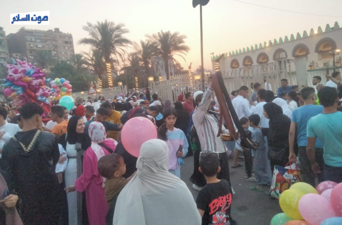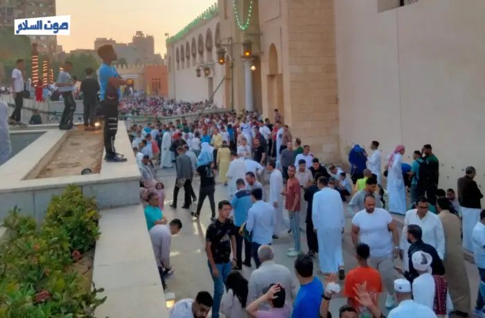 وتوزع المصلون ما بين داخل المسجد وخارجه حيث تمتد الساحة إلى محطة مترو مارجرجس لإستقبال المصلين وسط بهجة وسعادة الجميع.