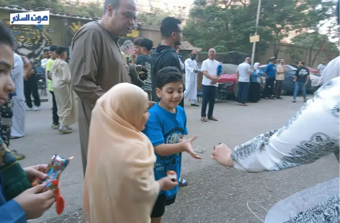 ومع انتهاء الخطبة بدأ الأهالي في مراسم الاحتفال بالعيد من خلال توزيع هدايا للأطفال وشراء "البلالين"، وتوزيع ألعاب للأطفال.