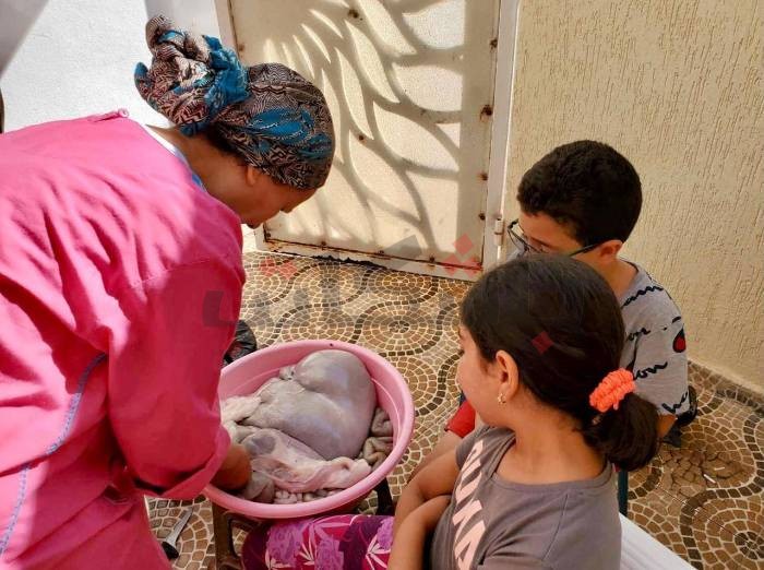 أفراد الأسرة التونسية يتعاونون في تجهيز الأضاحي