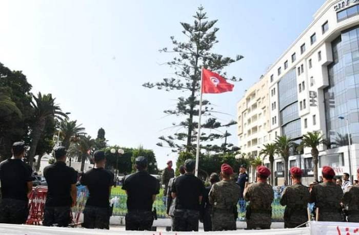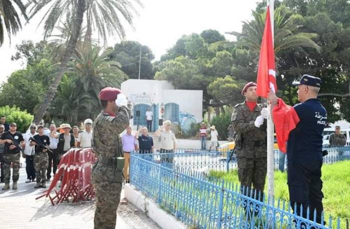 وتم خلال الموكب تحية العلم على أنغام النشيد الوطني بقيادة فرقة من الجيش الوطني، بالإضافة إلى موكب استعراضي للتشكيلات الأمنية من شرطة وحرس ووحدات تدخل، وفوج من الكشافة التونسية، ومجموعة من المواطنين.