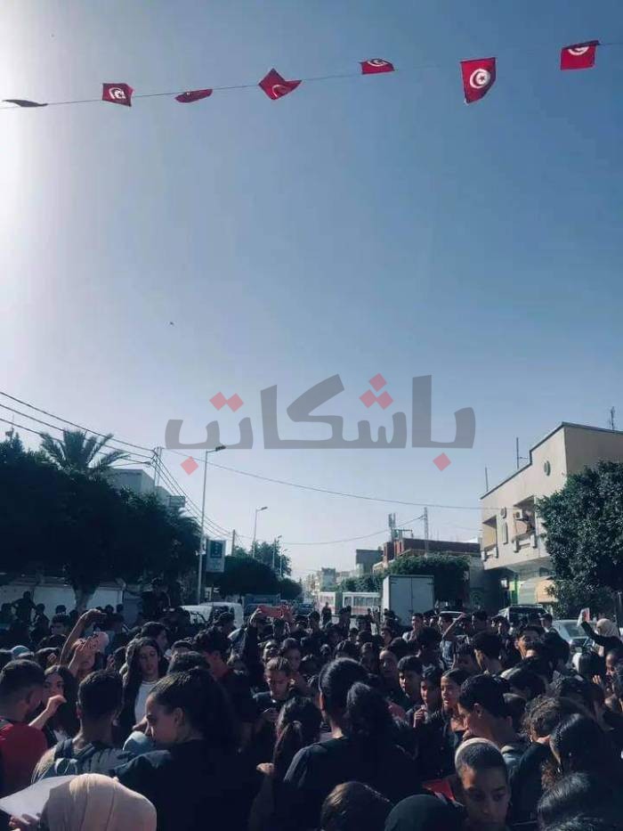 كما انطلقت مسيرة من المعاهد رفقة جمع من التلاميذ الذين خرجوا إلى الشارع محتجين على العدوان الإسرائيلي.