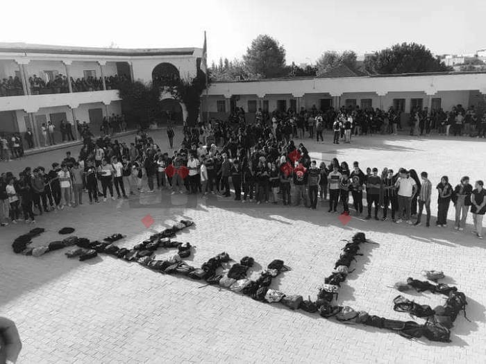 تلاميذ منزل بوزلفة يخرجون في مسيرة دعمًا لفلسطين