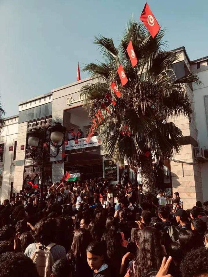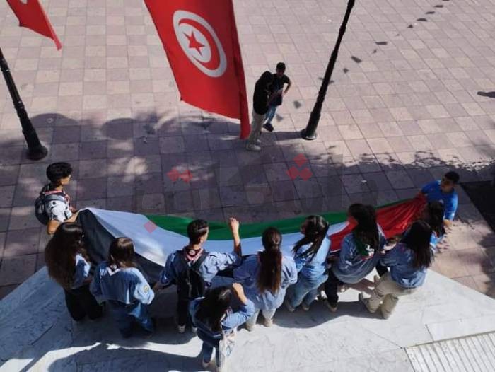 وتوجهت المسيرة إلى قصر البلدية بالمدينة، ورفع فيها التلاميذ شعارات داعمة لفلسطين ولحق شعبها في مقاومة المحتل.