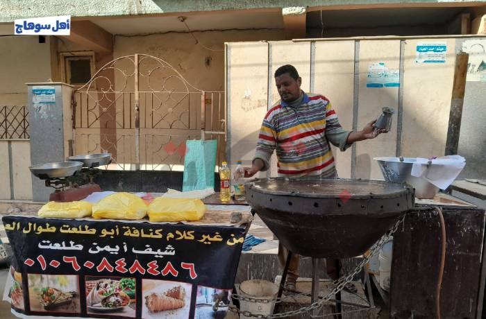 في منطقة الحويتي بمحافظة سوهاج، يقف عم أيمن داخل الفرن الخاص به لتصنيع عجائن رمضان، إذ يعمل طوال العام كطباخ لأشهى المأكولات إلا أنه يتحول إلى صانع كنافة مع اقتراب الشهر الكريم، وورث تلك المهنة عن والده، وتعد الكنافة والقطايف أطباق رئيسية في تلك المنطقة خلال رمضان.