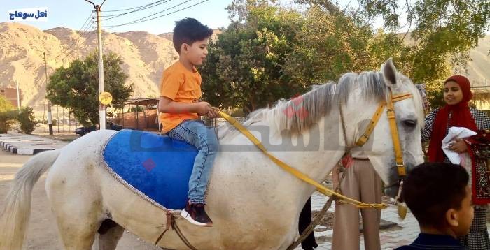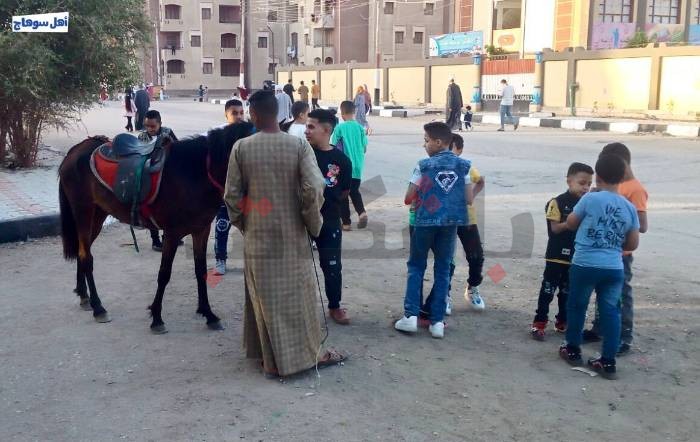 وبعد انتهاء الصلاة، اصطحبت العائلات أطفالهم لركوب الأحصنة الجميلة احتفالا بحلول العيد.