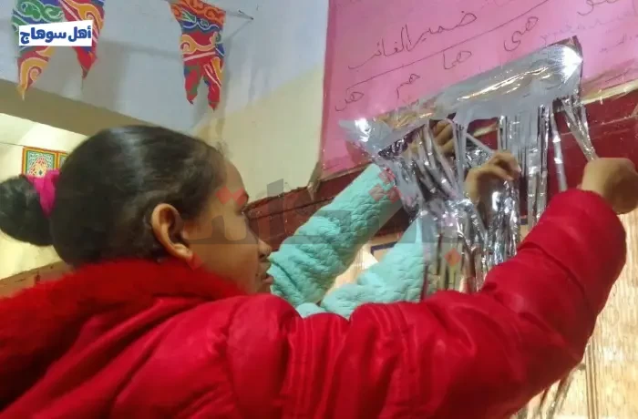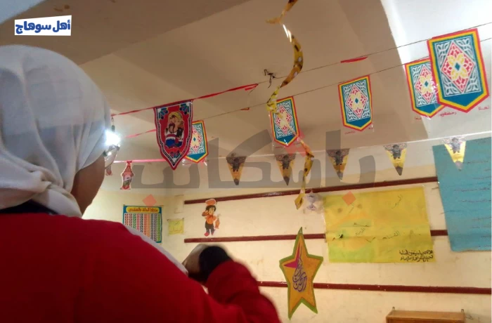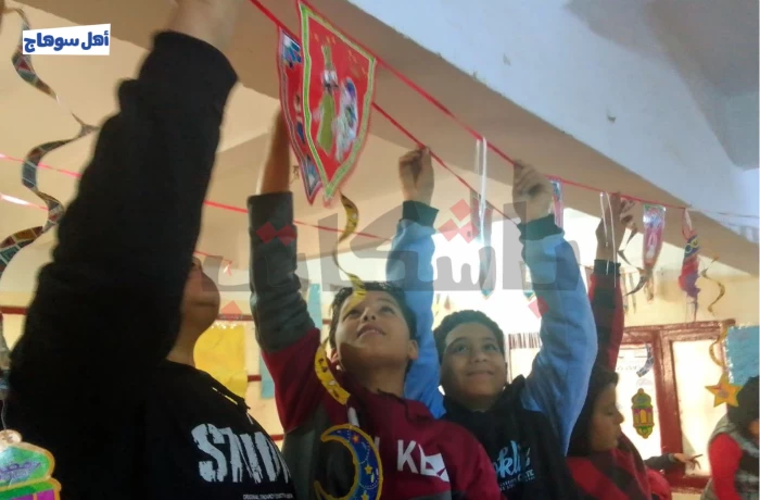 تبارى طلاب مدرسة ميريت آمون الابتدائية بمركز أخميم بسوهاج، في تزيين الفصول خلال شهر رمضان، حيث تداخلت الألوان الزاهية مع ضحكاتهم، إذ امتلأ المكان بأجواء من البهجة والحماس في استقبال الشهر الكريم، وتشابكت الأيادي الصغيرة في تناغم، كما تزينت الجدران والأسقف بزينة رمضان المبهجة.