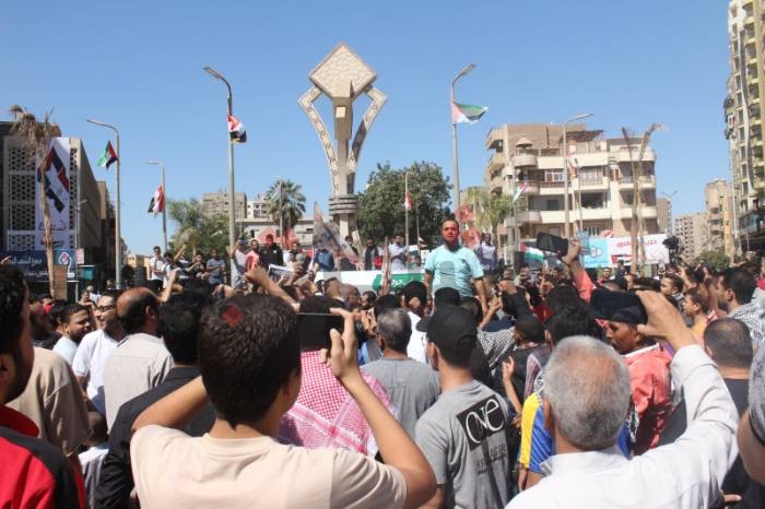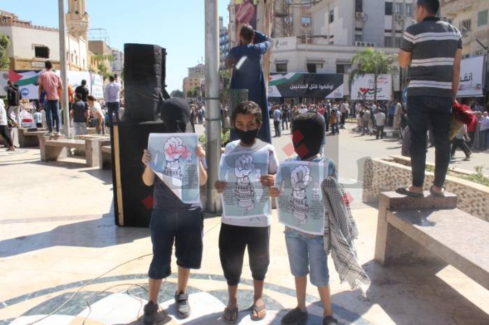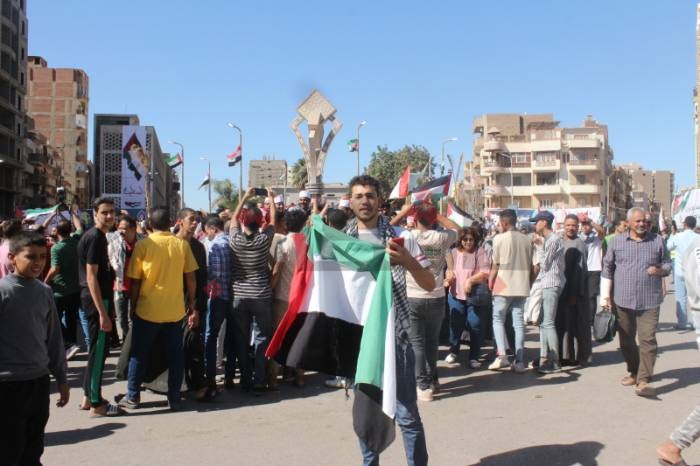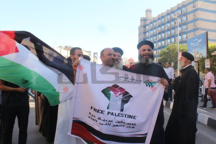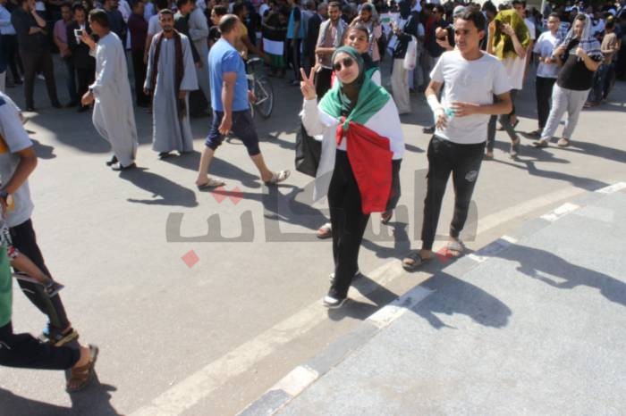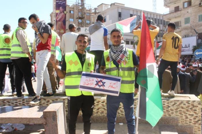 ثم توجهوا إلى الميدان، رافعين أعلام فلسطين، ورددوا هتافات مثل: “واحد اثنين الجيش العربي فين.. بالروح بالدم نفديك يا أقصى"، وهتفوا بالتكبير، ورددوا كلمات الأغاني الفلسطينية التي صدحت في الميدان.