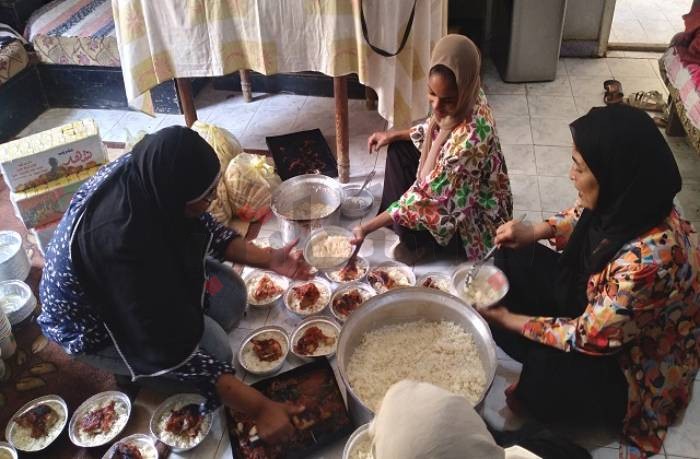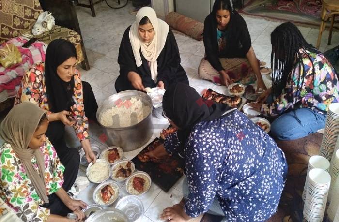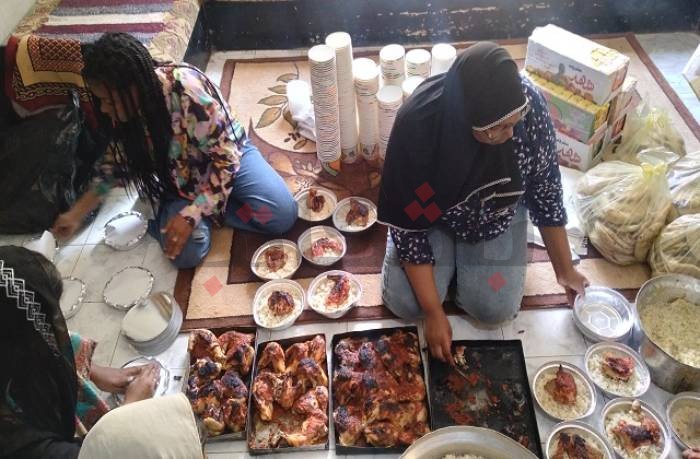 تحولت صالة منزل "ألفت" في أسوان إلى غرفة عمليات تضم الأكياس والأطباق البلاستيكية، وافترشت المتطوعات الأرض لتقسيم أصناف الطعام المُعد لتعبئته، فيما تابعت أخريات طهي الطعام بعناية؛ إجراءات تستغرق نصف يوم تقريبًا من العمل، ثم يذهب بعدها الجميع حاملًا الوجبات جاهزة إلى نازحين من السودان، ممن عبروا إلى مصر بعد فرارهم من الاشتباكات الدائرة هناك منذ ثلاثة شهور.