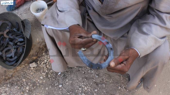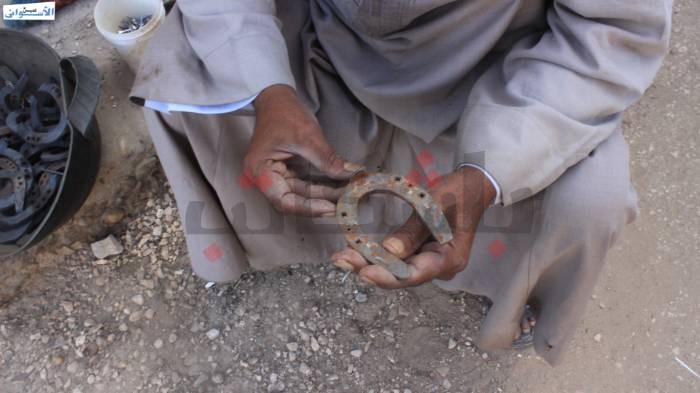 في حاوية جلدية سوداء يضع معداته، المستخدمة لفك وتركيب "الحدوة"، طوال 50 عامًا، ظل الحاج عرفة سعيد ـ 68 عامًا ـ محتفظًا بحرفته التي تعلمها في عمر الثانية عشر.