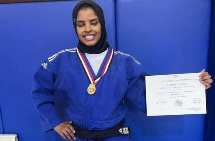 صورة أرشيفية_ فيسبوك_ بشاير سري بعد تتويجها ببطولة الجمهورية لجودو المكفوفين
