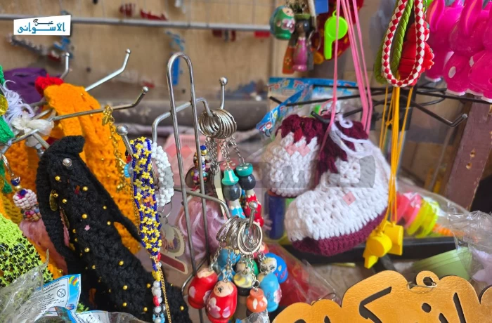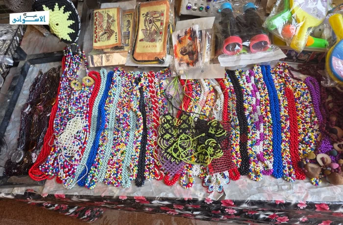 تتنوع المنتجات التي تصنعها نادية وليلى بين قطع صغيرة وأخرى أكبر تحمل الطابع النوبي في تفاصيلها وألوانها، على طاولة العرض تصطف عقود كروشية ملونة من الخرز والخيوط القطنية، إلى جانب أساور وإكسسوارات للشعر، وميداليات ومشغولات صغيرة.