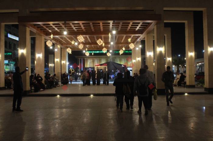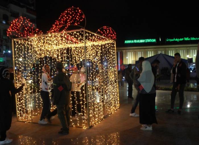 تتزين أسوان بمناسبة رأس السنة في ميدان المحطه بكثير من األنوار ، والذي أصبح يأتي إليه الكثيرمن الناس من أسوان