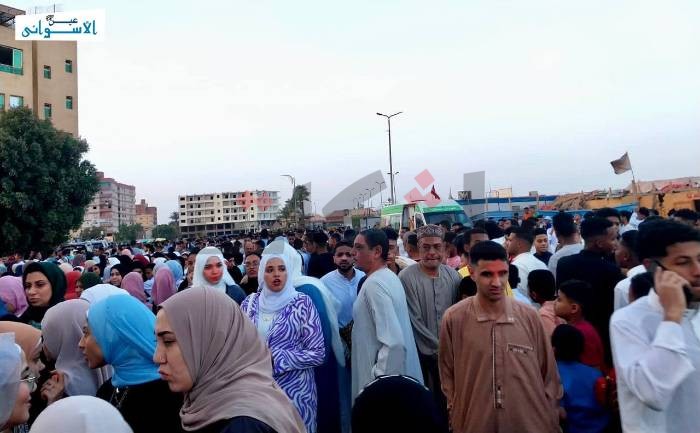 وفي الجامع الكبير، احتشد أهالي أسوان لأداء صلاة العيد، وسط توزيع الحلويات والبلالين على الأطفال القادمة للصلاة مع عائلاتهم.