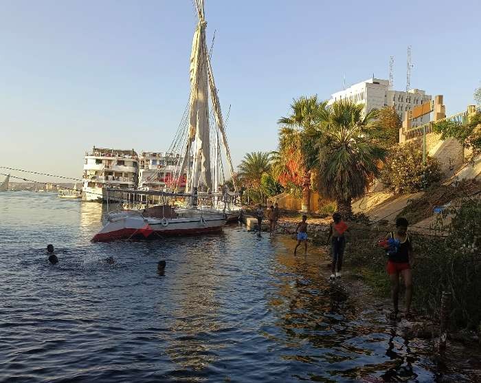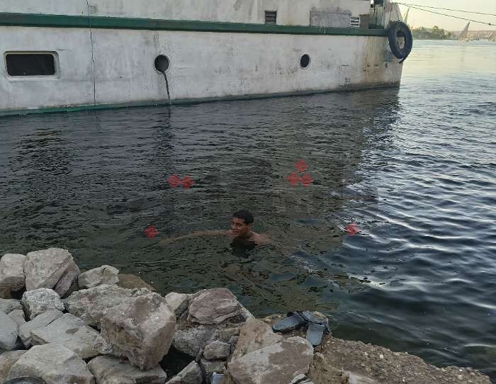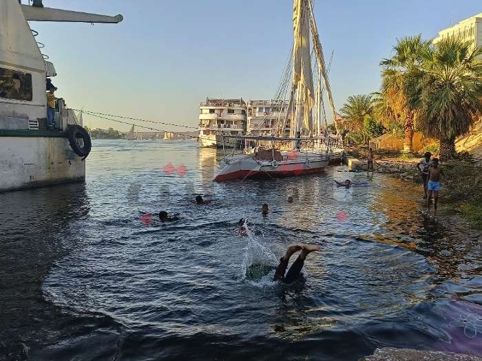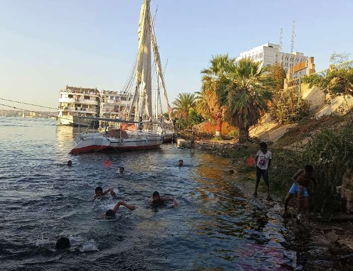 ومنذ بداية الموجة الحارة، يذهب مجموعة من الأطفال والشباب يوميًا بين سن 14 حتى 19 عامًا للسباحة في نيل أسوان.