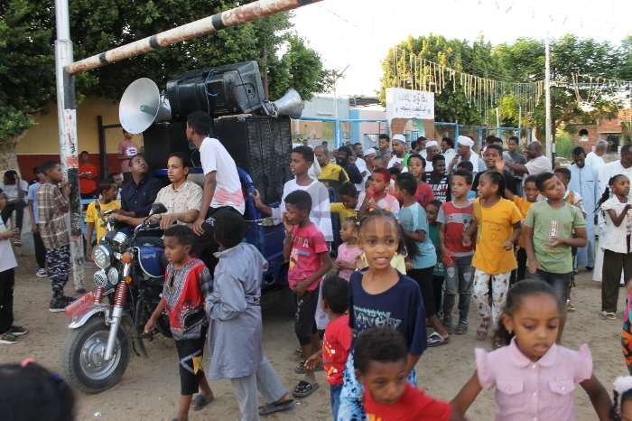 كما نقل "توك توك" السماعات ثم الشيوخ ممن صدحوا بالتواشيح والمديح للرسول صلى الله عليه وسلم، ثم امتزج رجال النجع مع مجموعة كبيرة من الأطفال الصغار الفرحين بهذا الجو الجميل.