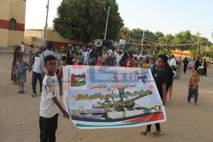 وظهر الطواف في مشهد مهيب، سبقه طفلان حملا لافتات تدعم الأخوة الفلسطينيين.