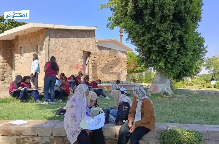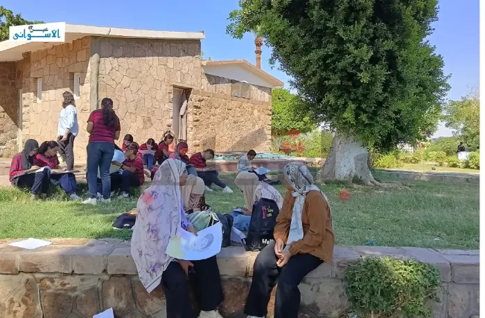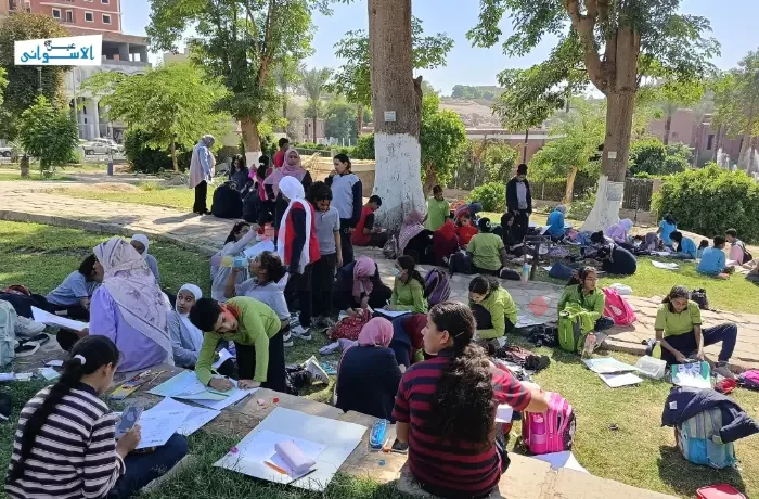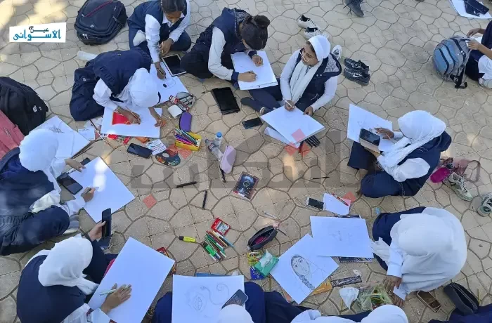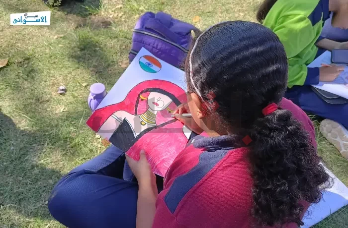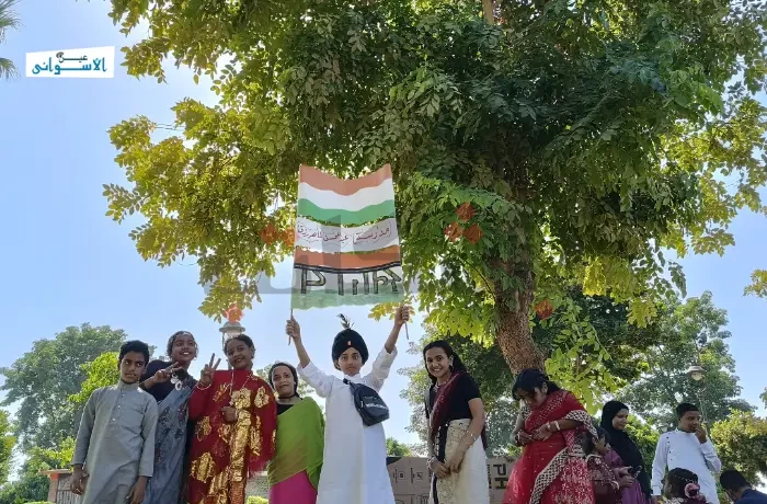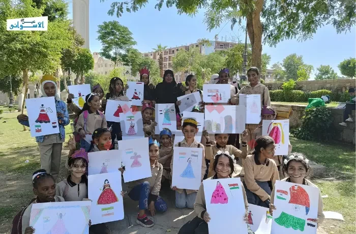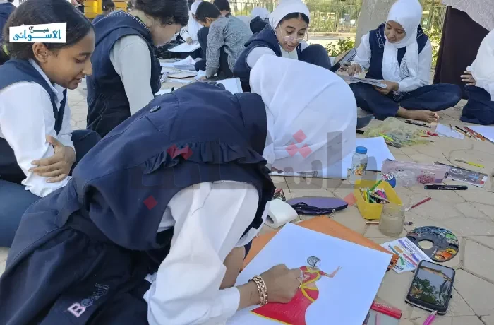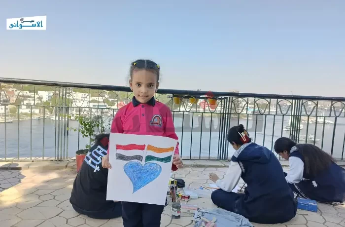 في الهواء الطلق داخل حديقة فريال، جلس 1000 طالب وطالبة من مدارس أسوان، وعلى ملامحهم تبدو البهجة، مُستمتعين بإظهار مواهبهم في الرسم، فيما عبرت لوحاتهم عن الثقافة الهندية ومدى احتفائهم بها، من خلال رسم علم الهند، والنساء بزي الساري التقليدي.