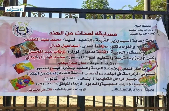 وكانت قد انطلقت النسخة الثامنة والعشرون من مسابقة "لمحات من الهند"، بحديقة فريال، أمس الأربعاء، والتي نظمتها مديرية التربية والتعليم والتربية الفنية، بالتعاون مع السفارة الهندية، لجميع المراحل التعليمية بإدارات أسوان.