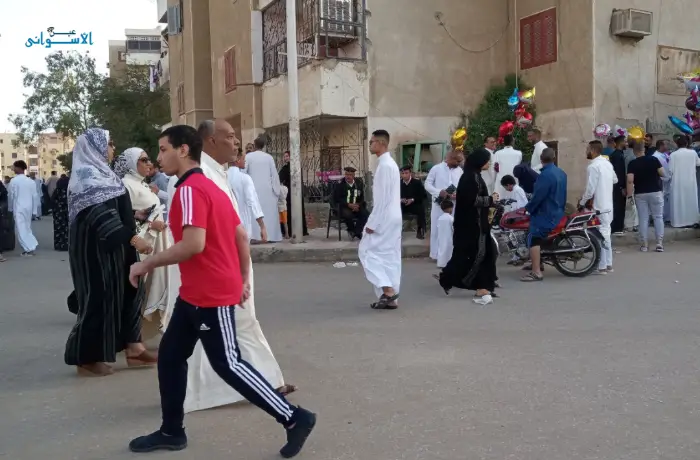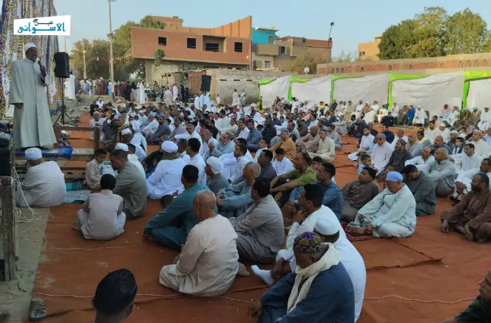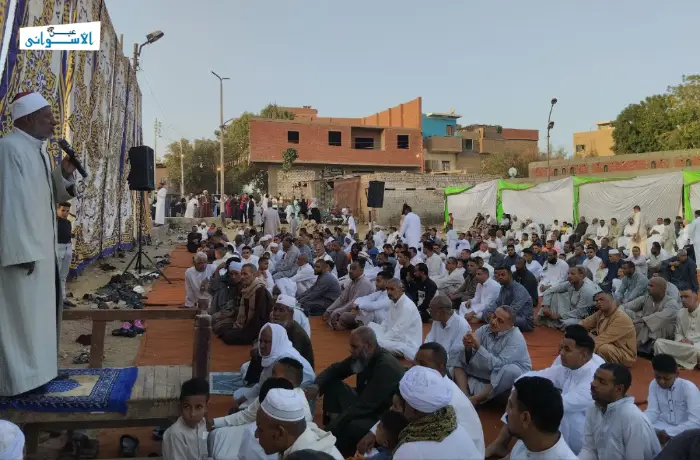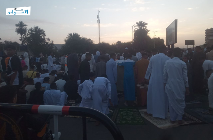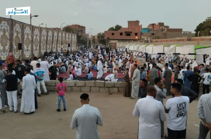 أدى الآلاف من أهالي محافظة أسوان صلاة عيد الفطر صباح اليوم في مختلف مساجد وساحات المحافظة، وسط أجواء مزجت بين بهجة الاحتفال بالصلاة، والتضامن مع القضية الفلسطينية، والدعاء لفلسطين والسودان، وهو ما يتكرر للعام الثاني على التوالي في مساجد وساحات المحافظة.