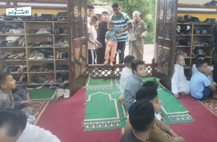 بدأ الإمام والأطفال التكبير في تمام الخامسة صباحًا، ليعم أرجاء المسجد بأصوات التهليل والفرحة.
