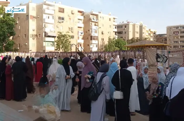 مع أولى ساعات الفجر، بدأ توافد العائلات من رجال وسيدات وأطفال، وامتلأت ساحات المسجد وحديقة العقاد بمئات المصلين الذين اجتمعوا وسط أجواء روحانية مميزة لاستقبال هذه المناسبة المباركة.