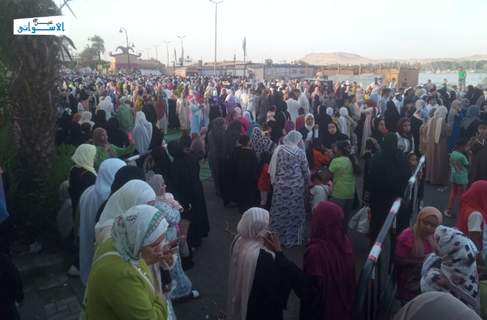 واستقبل المسجد الجامع بكورنيش النيل في مدينة أسوان، آلاف المصلين الذين افترشوا المسجد وساحته الخارجية التي نظمها مسؤولي المسجد منذ أمس، وخصصت مساحة للسيدات لضمان الخصوصية.