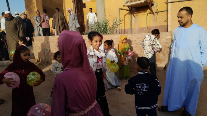 وفي جامع عمر بن الخطاب في قرية أبوريش بحري بـ نجع المنقطة؛ توافد المصلون من سيدات ورجال وأطفال منذ ساعات الفجر الأولى استعدادًا لأداء صلاة عيد الفطر.