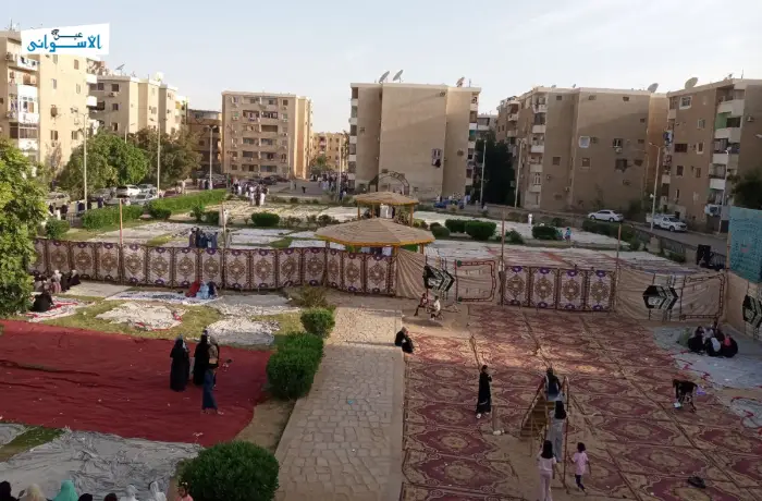 كما استعد المسجد السلوي في طريق السادات بجوار حديقة العقاد بمدينة أسوان، لاستقبال المصلين ليلة العيد، وسط أجواء مليئة بالروحانية والفرح حرص فريق التنظيم على تجهيز المداخل والمخارج لضمان سهولة الحركة، ولم تغب مظاهر الاحتفال عن المكان، حيث زُينت الحديقة البالونات والهدايا لإدخال البهجة على قلوب الأطفال.