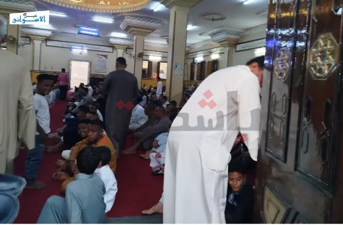وبدأ الإمام والأطفال التكبير في تمام الساعة الخامسة صباحًا، عقب صلاة الفجر، لتملأ أصوات التهليل و الفرحة أرجاء المسجد.