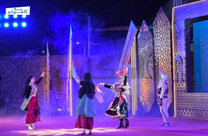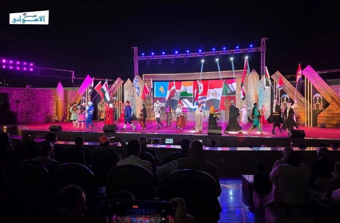 تحت أضواء مسرح فوزي فوزي، تحولت أسوان، ليلة أمس، إلى لوحة من الألوان والحركة، خلال مهرجان أسوان الدولي للثقافة والفنون، الذي تداخلت فيه أزياء الفرق الشعبية، وامتزجت اللغات دون الحاجة إلى ترجمة، لتصبح الخشبة مسرحًا مفتوحًا للحكايات الآتية من شتى القارات.
