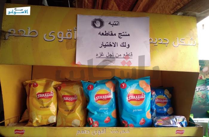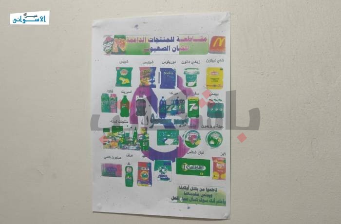 وفي أسوان تزينت المحلات التجارية بلافتات المقاطعة، ومنها محل محمد عبدالحي، 58 عام، صاحب محل لبيع السلع الغذائية في منطقة الطابية.