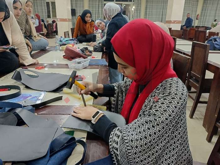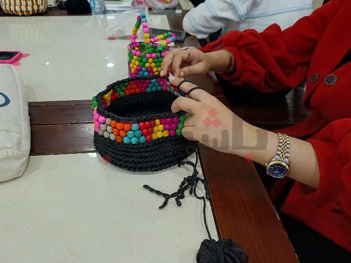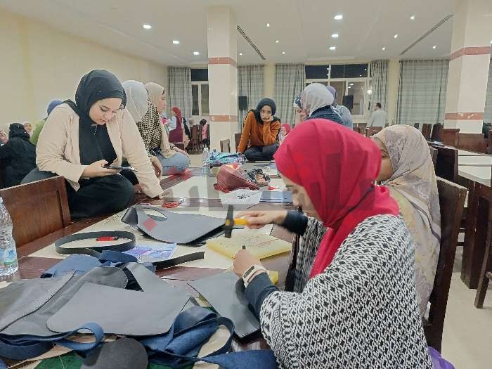 ودربت إقبال حسين، مدربة خرز خشب ومكرمية، 12 فتاة من محافظات أسوان والقاهرة ومرسى مطروح وجنوب سيناء على طرق صناعة الحقائب بخيوط المكرمية، وجراب حافظ الزجاجات.