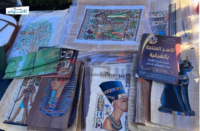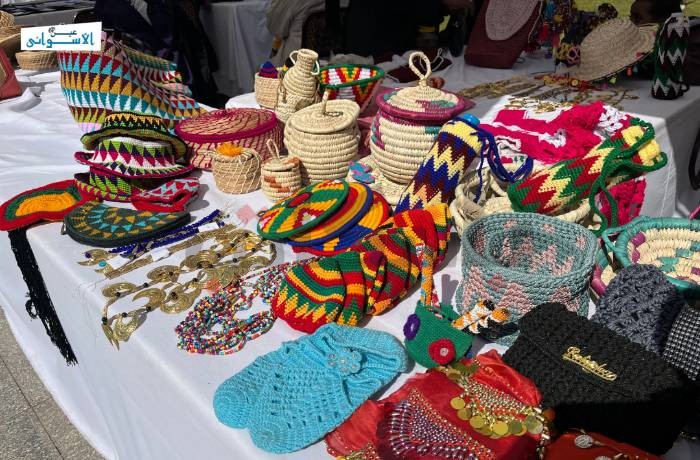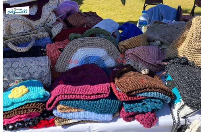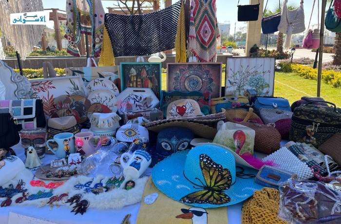 مشغولات حرفية، ومنتجات صنعت بأيد مصرية عملت عليها سيدات مكافحات، يحاولن بكل الطرق تحقيق ذاتهن، وتوصيل منتجاتهن إلى أهالي أسوان ومنها إلى المعارض المحلية والدولية.