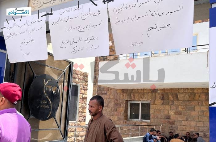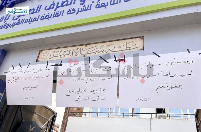 محصلو شركة مياه أسوان يجددون اعتصامهم.. وعاملين: غدا إضراب عن الطعام