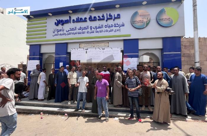 نظّم، اليوم، العشرات من محصلي الفواتير والعدادات بنظام العقود بشركة مياه الشرب والصرف الصحي بأسوان، وقفة احتجاجية، أمام مقر خدمة عملاء الشركة بمنطقة مرشح مياه أسوان فريال، للمطالبة بالحصول على عقود عمل شاملة أسوة بفروع الشركة في المحافظات الأخرى.