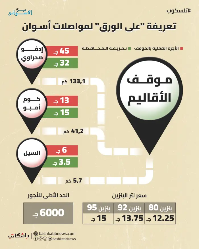 تصوير: أمنية حسن، باسم حنيجل - انفوجراف التعريفة الرسمية والفعلية بأسوان، ولقطات لموقف الأقاليم