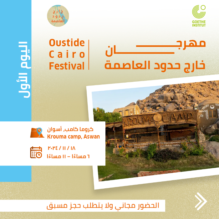 ينطلق غدًا الإثنين 18 نوفمبر، حفل افتتاح مهرجان "خارج حدود العاصمة"، الذي ينظمه معهد "جوتة" الألماني، في ثلاث محافظات مصرية وهي أسوان والمنيا وبورسعيد، وتبدأ أولى فعاليات المهرجان بمحافظة أسوان، بـ"كروما كامب" بجزيرة سهيل، من الساعة السادسة مساءً الاثنين وحتى الحادية عشرة ليلاً، فيما يشهد الجمعة 22 نوفمبر الجاري، ختام فعاليات المهرجان بالمحافظة.