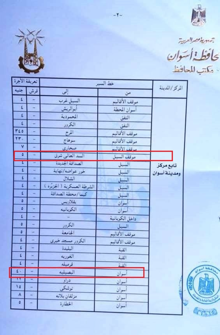 ومع إعلان المحافظة عن التعريفة الجديدة لخطوط السير الداخلية، فوجئ المواطنون في مناطق مختلفة من أسوان بارتفاعات غير مبررة في الأسعار. فبينما كانت تعريفة الأجرة من موقف السيل إلى منطقة السد العالي 5 جنيهات في أكتوبر 2024، ارتفعت بعد الزيادة الأخيرة إلى 9 جنيهات، وهو ما أثار غضب المواطنين، الذين أكدوا أن السائقين لا يلتزمون بالتعريفة الرسمية، ما يزيد من معاناتهم اليومية.