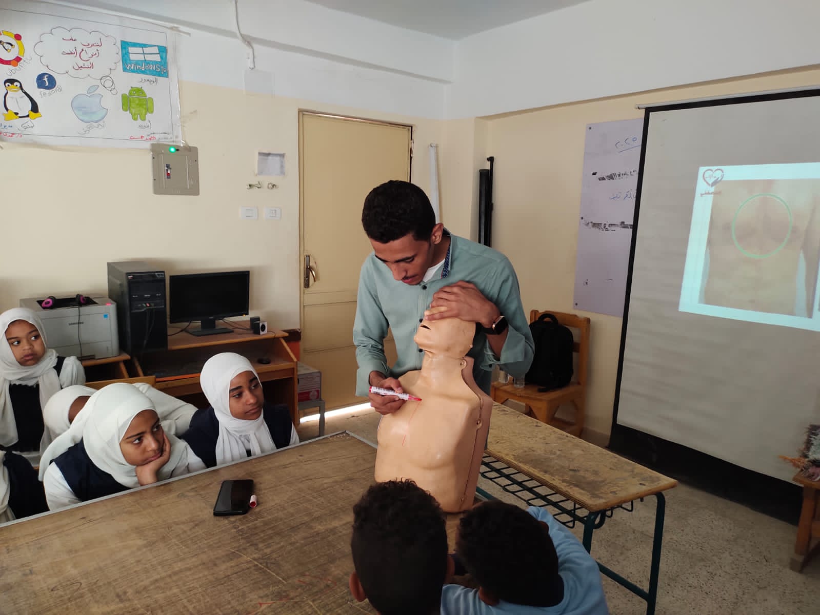 تشمل التدريبات، التي تُنظَّم على مدار يومين بمعدل أربعة ساعات يوميًا، محاور متنوعة، من بينها: "التعامل مع الجروح، والحروق، والكسور، والرعاف، والإغماء، وغيبوبة السكر، بالإضافة إلى تدريبات عملية على الإنعاش القلبي الرئوي (CPR)، وقياس الضغط والسكر، وطرق الحقن، وتركيب الكانيولا والقسطرة البولية".